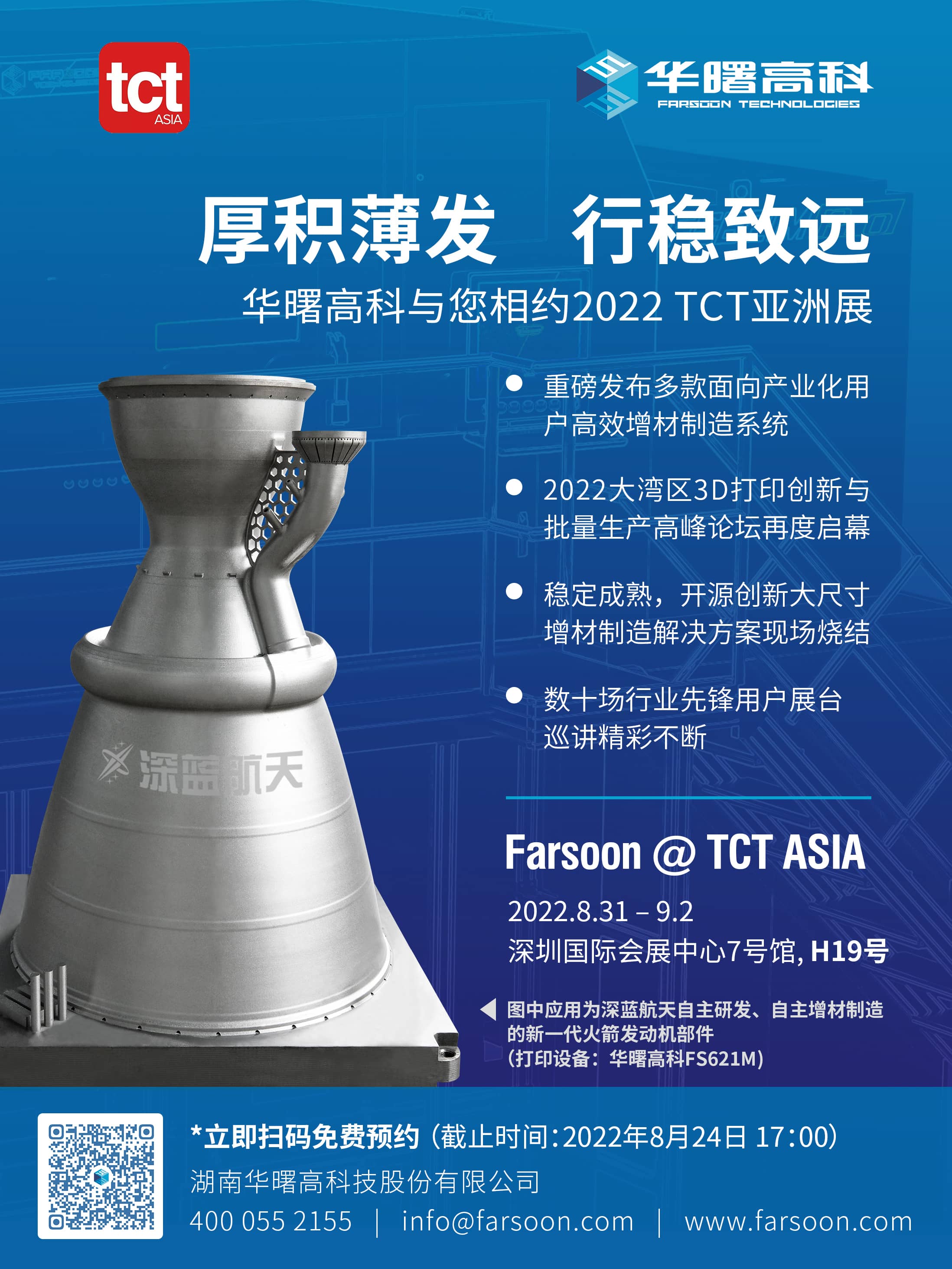 在特殊的2022年,亚洲最大的3D打印技术专业展览会——TCT亚洲展暂别上海,南下深圳,于8月31日—9月2日在深圳国际会展中心(宝安)重新起航。工业级3D打印领航企业华曙高科将以全新形象,连续第8年盛装亮相2022 TCT亚洲展,为全球用户展示开源创新、更具产业化、更加成熟稳定的全新金属、高分子3D打印解决方案!