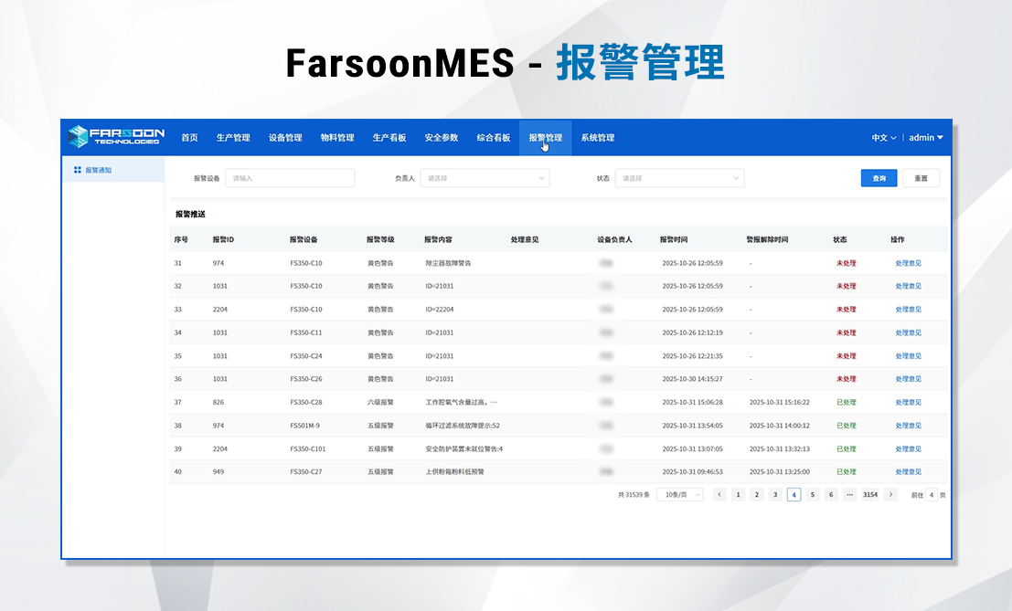 华曙MES系统报警管理功能,通过对设备主机、循环过滤系统等关键环节的安全参数实施实时监测与数据分析,精准捕捉参数异常波动,一旦超出预设安全阈值,立即触发安全报警并通过多渠道推送通知,助力工作人员第一时间响应处置,从源头降低设备故障风险与维护成本,为生产安全筑牢坚实防线。
